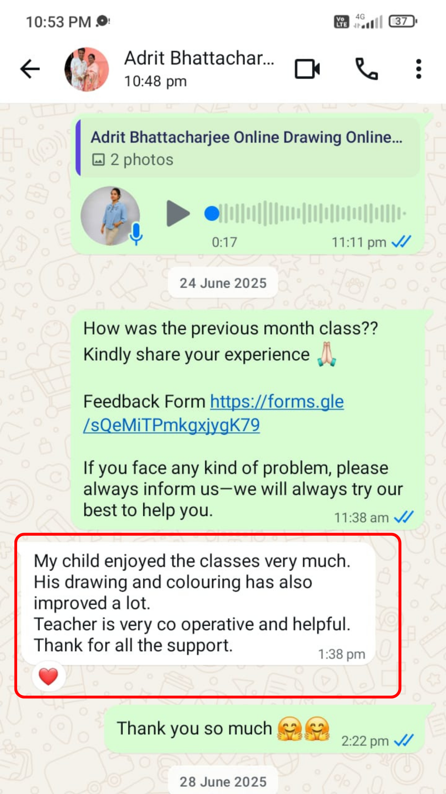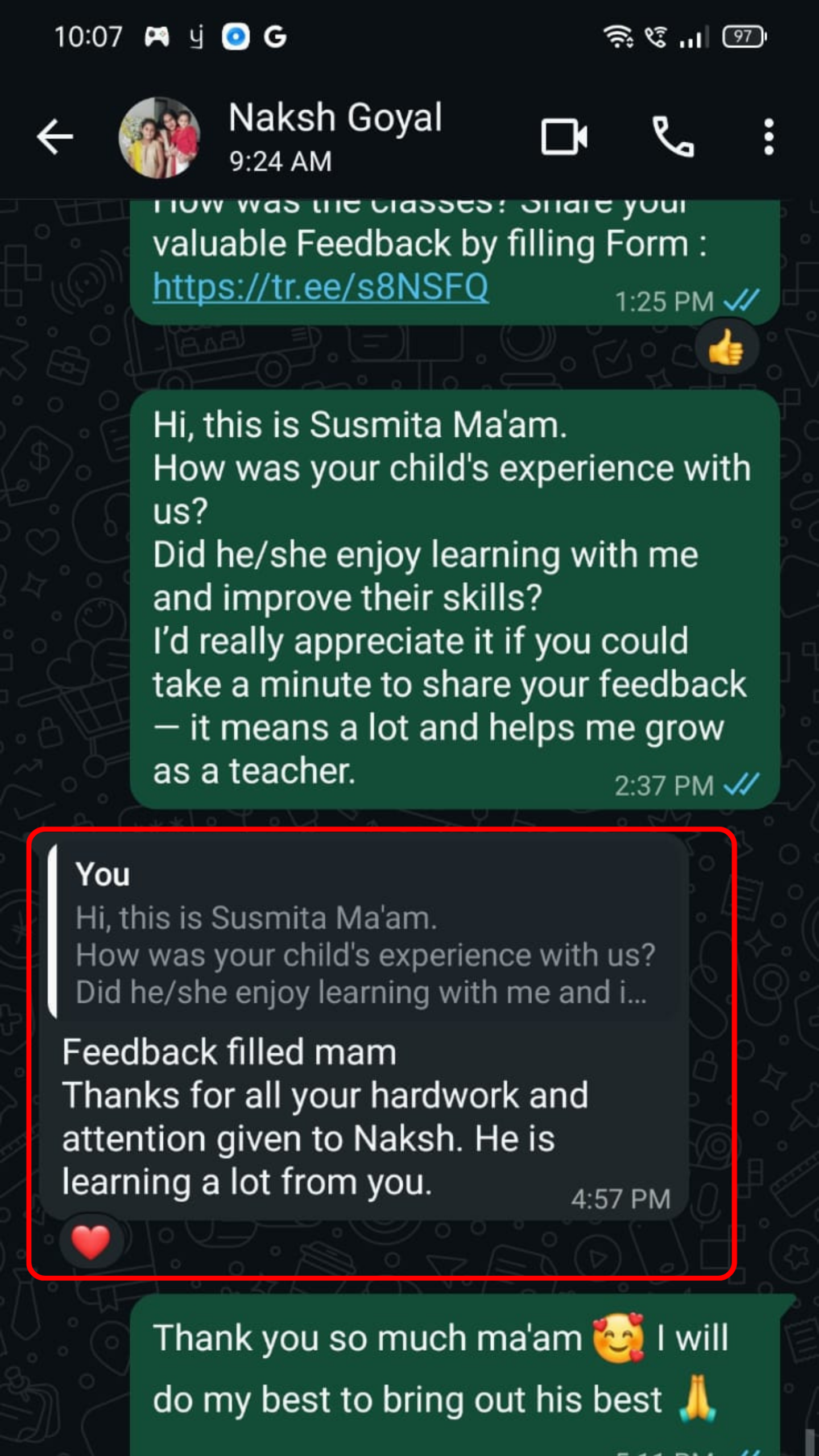 👨👩👧 Guardian’s Feedback for Teacher