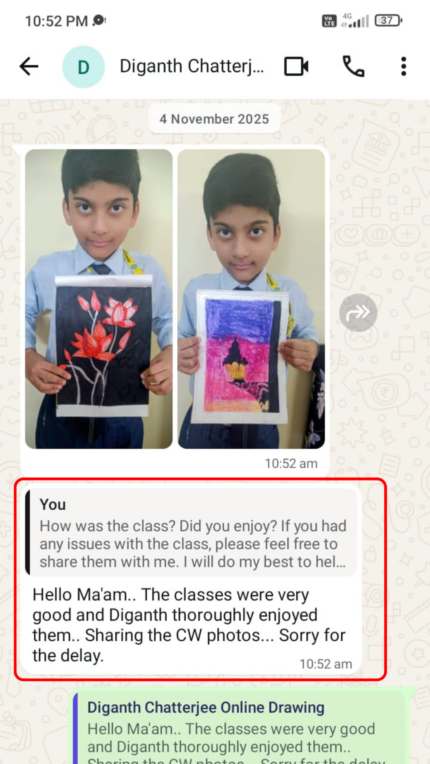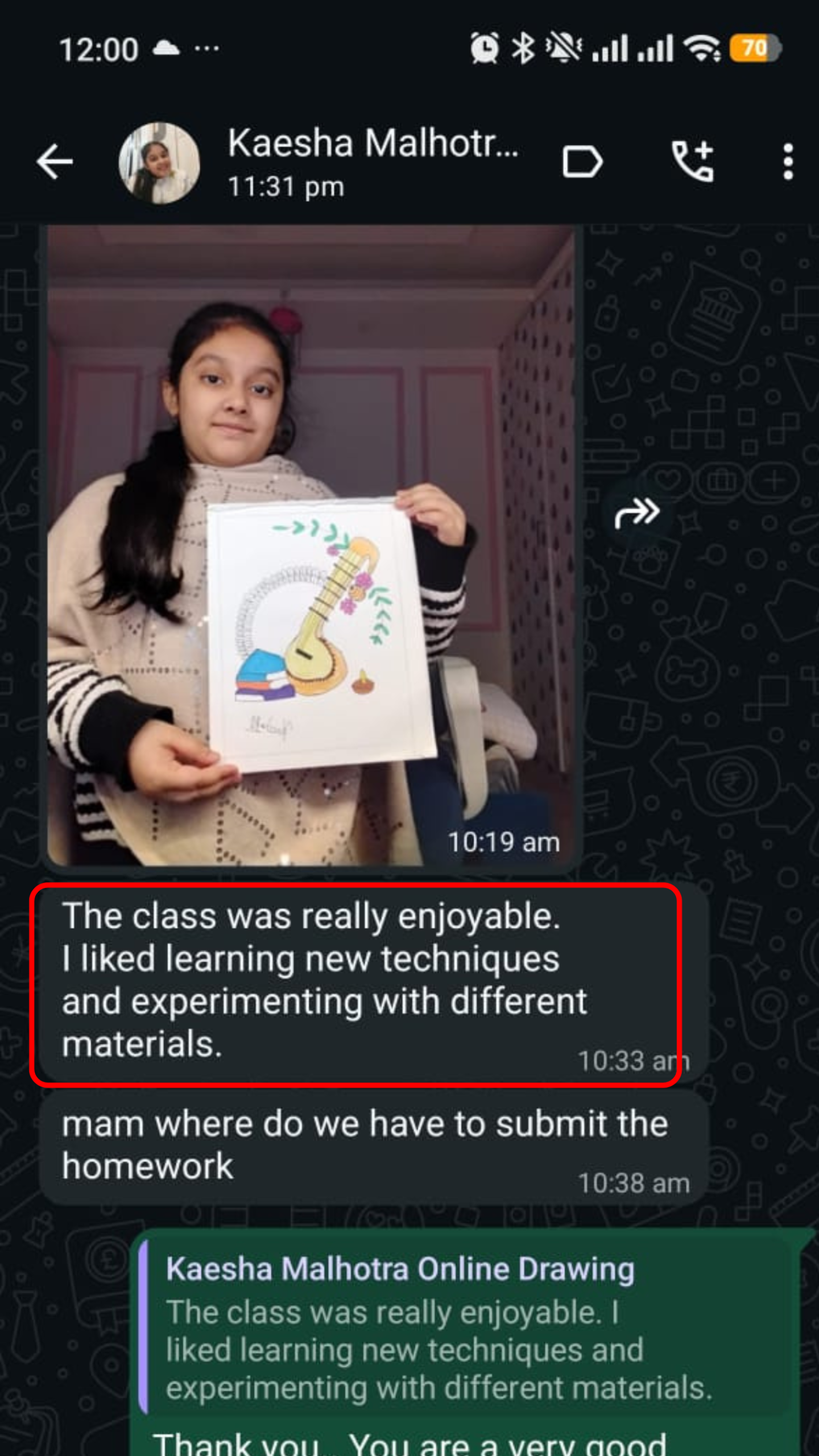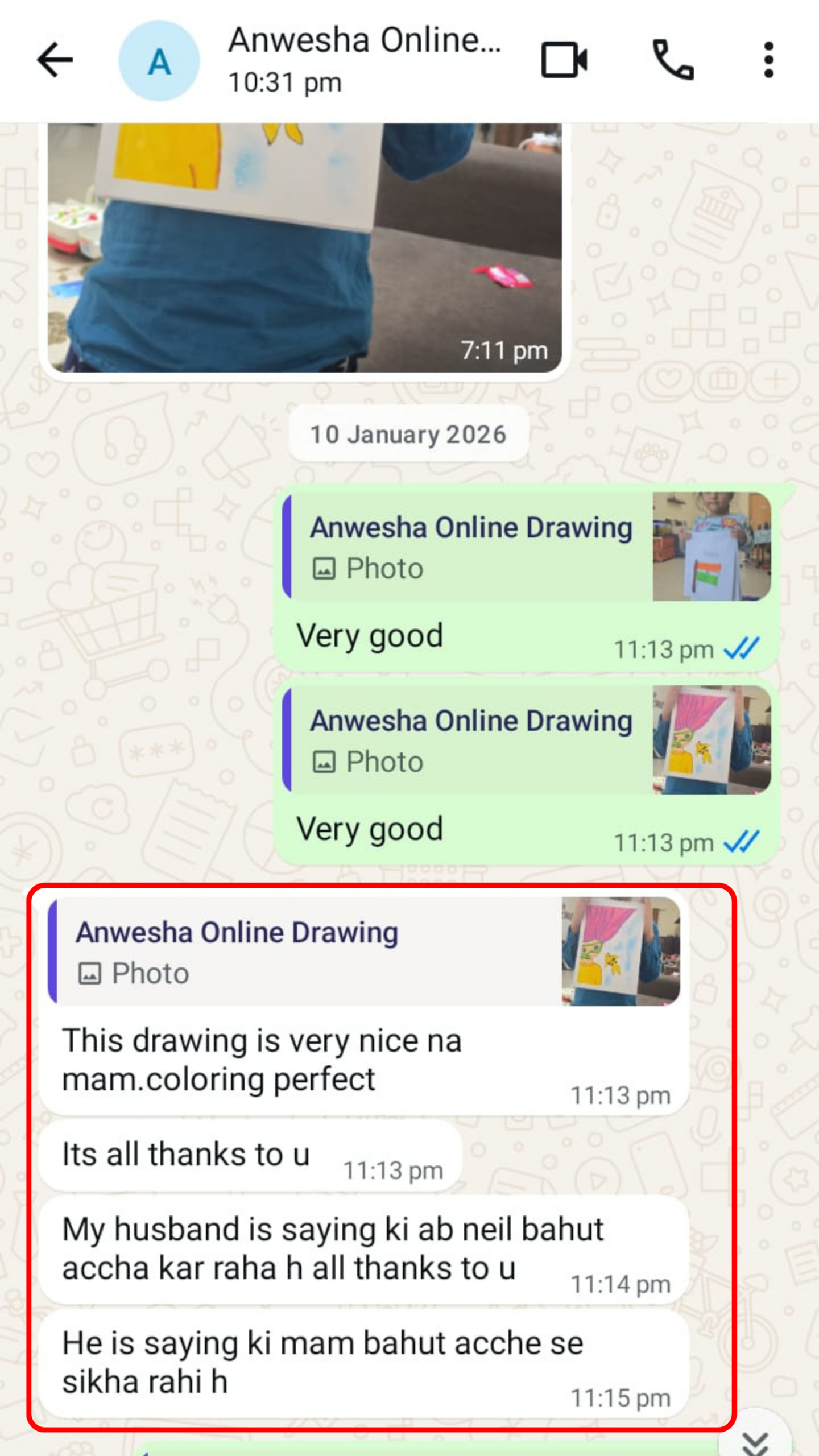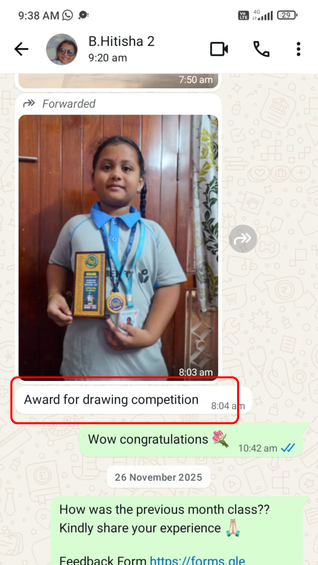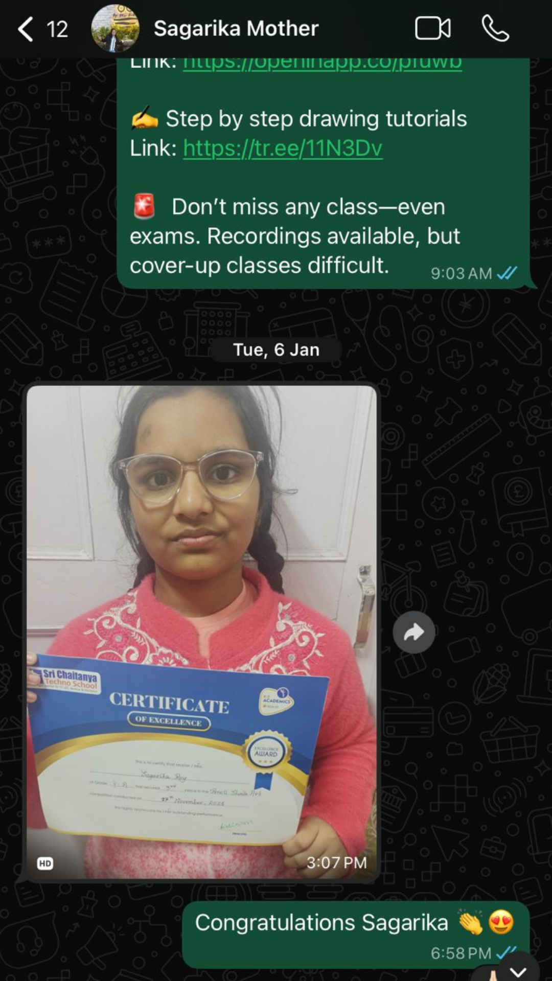 📲 We send daily reminders in the group with student name, class time, and class link.
