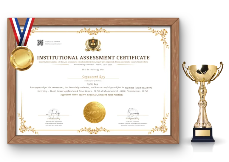 ✅ The certificate shown in the image is exactly the same certificate awarded after successfully attending the annual drawing exam held every December.